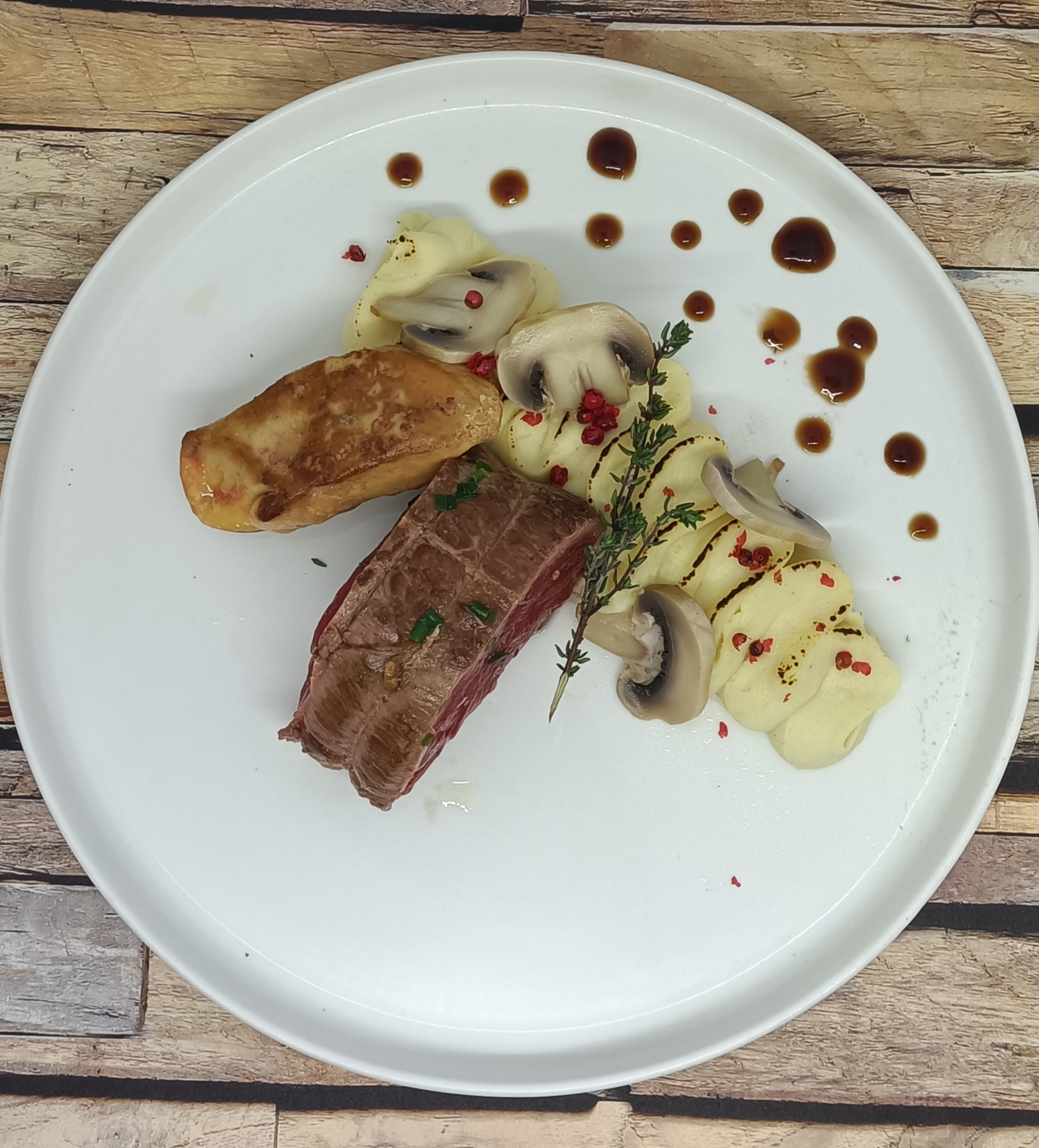 Composition et allergènes : filet de boeuf, escalope de foie gras, jus réduit.